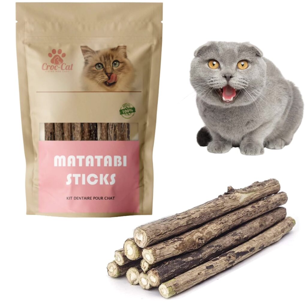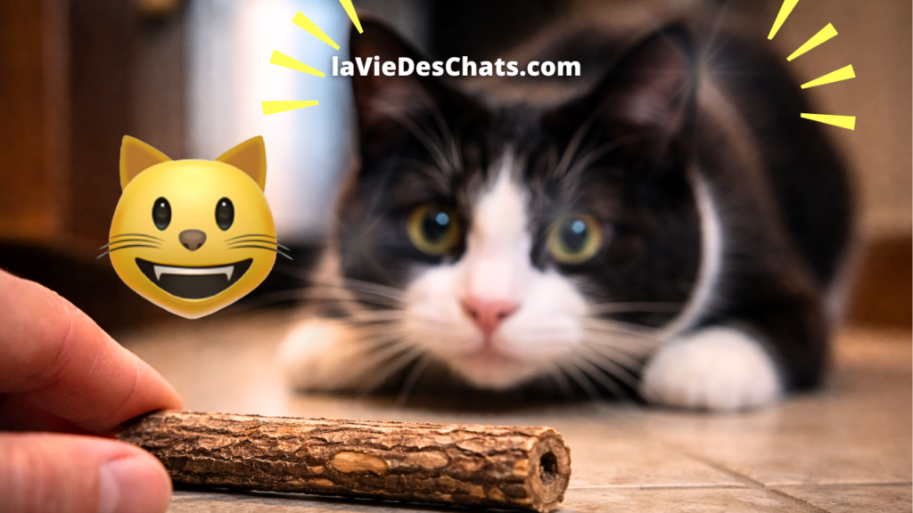 Le bois que j’utilise provient du matatabi, issu de la plante Actinidia polygama. Mon pépiniériste l’appelle le kiwi japonais. Si vous suivez laVieDesChats depuis 2012, vous connaissez sans doute la classique herbe aux chats, la Nepeta cataria ou la cataire. Le matatabi est une autre plante, elle contient plusieurs composés actifs différents. Résultat : beaucoup plus de chats y réagissent, y compris ceux qui restent indifférents à la cataire.