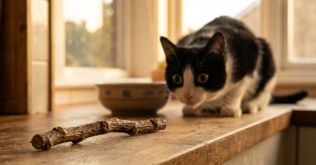 Le détail qui change tout, ce n’est pas seulement le bois, le matatabi dans notre exemple. C’est le moment. Le cerveau du chat adore la prévisibilité. L’anticipation fait déjà partie du processus. En venant me rejoindre en cuisine à heure presque fixe, Sacha ne réclame pas un objet. Il attend sa séquence.