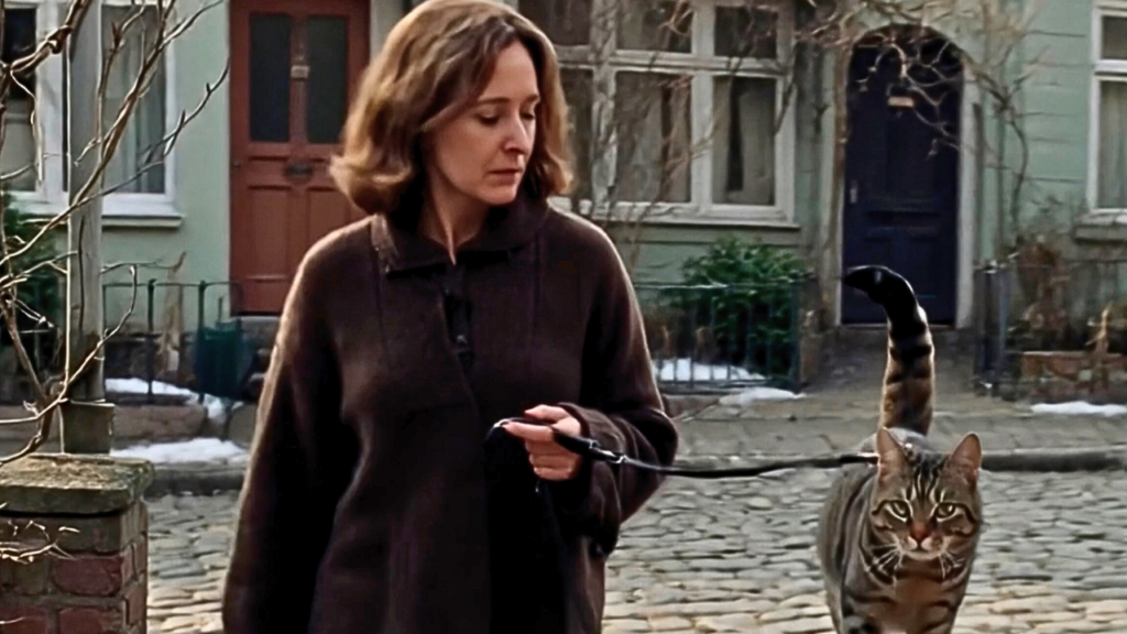 Marie est surprise, l’air froid de la rue lui mord les joues. Moka avance d’un pas sûr, queue relevée, oreilles pivotant dans toutes les directions. Marie suit, un peu tendue, tentant de décoder les attitudes de la chatte pour éviter tout faux pas.
